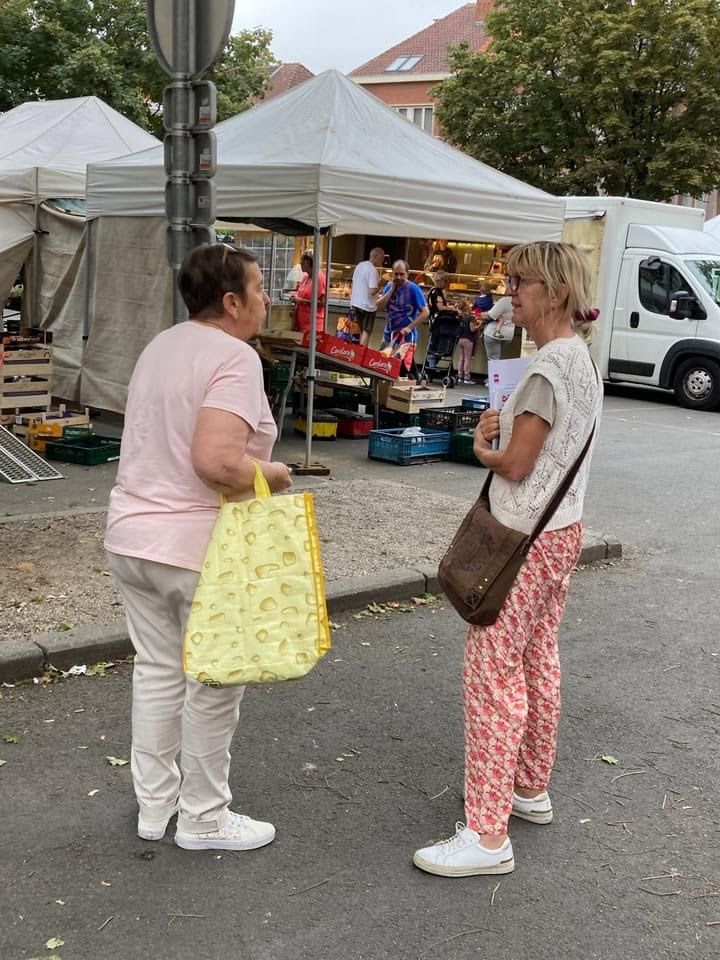 Notre équipe s’est ensuite remise en route vers Braine-l’Alleud où avait lieu le marché. Nous avons pu discuter avec les citoyens, leur remettre notre folder reprenant les valeurs de DéFI mais aussi parler avec des maraîchers de leurs préoccupations. Notre conseiller communal local Christian Ferdinand ainsi que le président de section et conseiller CPAS Olivier Gasia en ont profité pour remettre aux citoyens le bilan de leur travail pour la ville de Braine-l’Alleud au conseil communal.