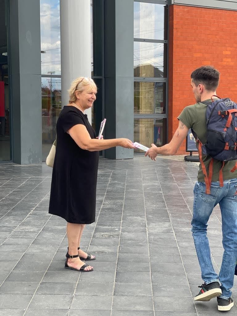 Ensuite direction Wavre pour une distribution de tracts devant la gare et à travers les rues du chef-lieu de la province, accompagné par notre conseiller communal et provincial Luc D‘hondt ainsi que de la conseillère CPAS Elisabeth Devocht.