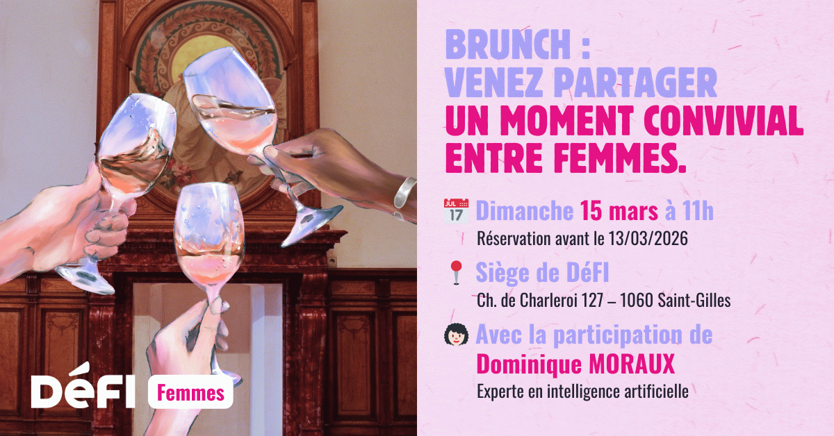 DéFI Femmes vous donne rendez-vous le dimanche 15 mars, dès 11 h, au siège de DéFI pour un brunch convivial.